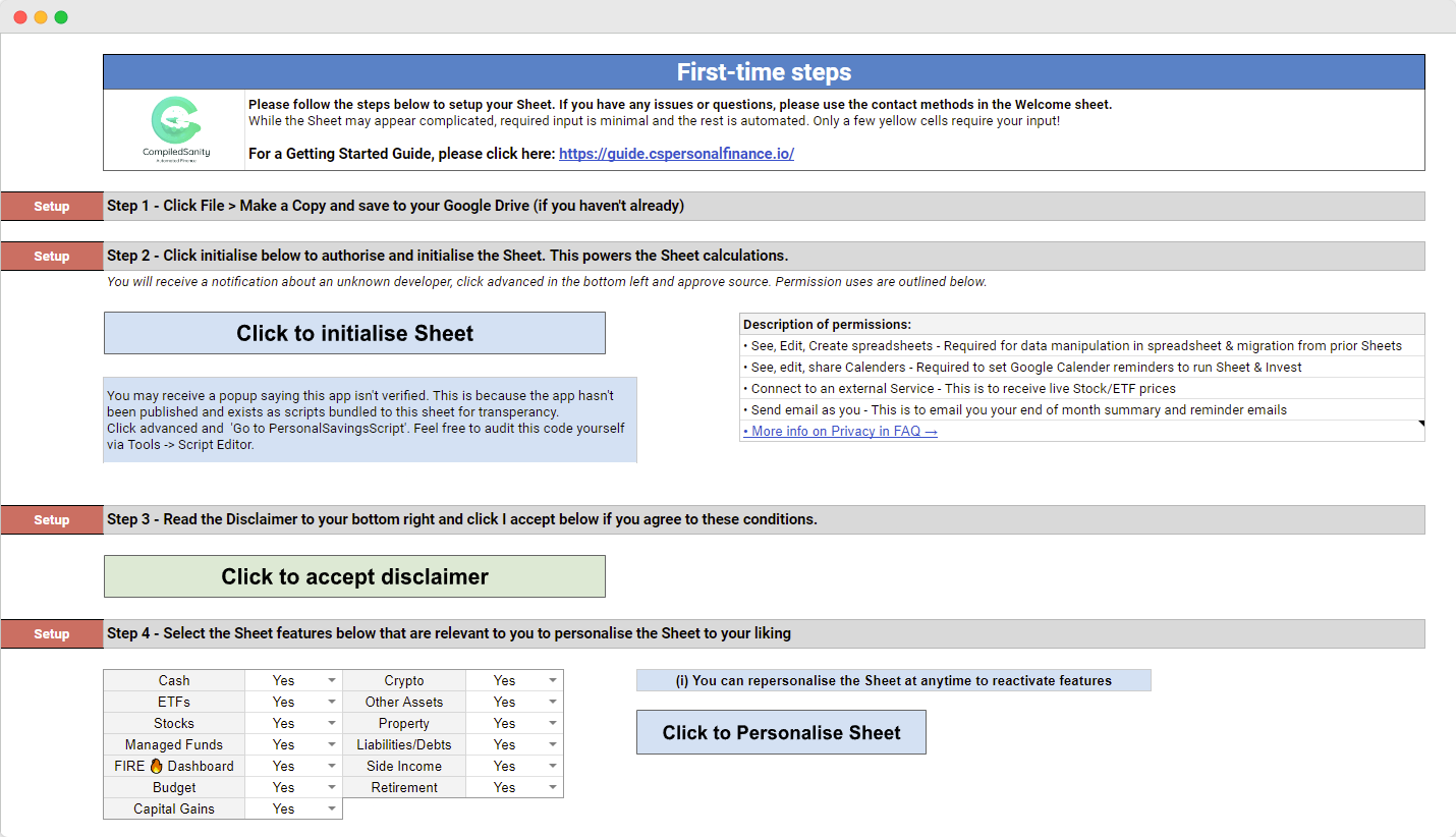 #### **Get started with the sheet in 5 easy steps. These are outlined below:**
